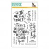I then created a tag for the bag using ivory and blue cardstock scraps from the kit. I cut the tags using one of the Nesting Tags Dies by Hero Arts. I added sentiments from the Thankful Heart stamp set using retired Olive and Autumn Terracotta inks from Close To My Heart. I added hemp twine to the tag and clipped it on using a mini clothespin from the Lovestruck clothespins by Close To My Heart.